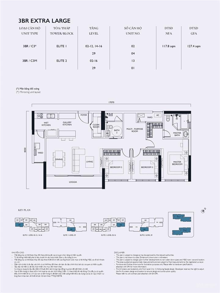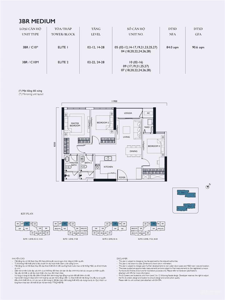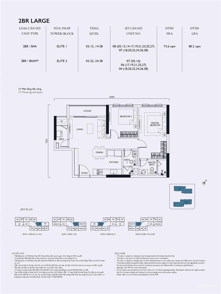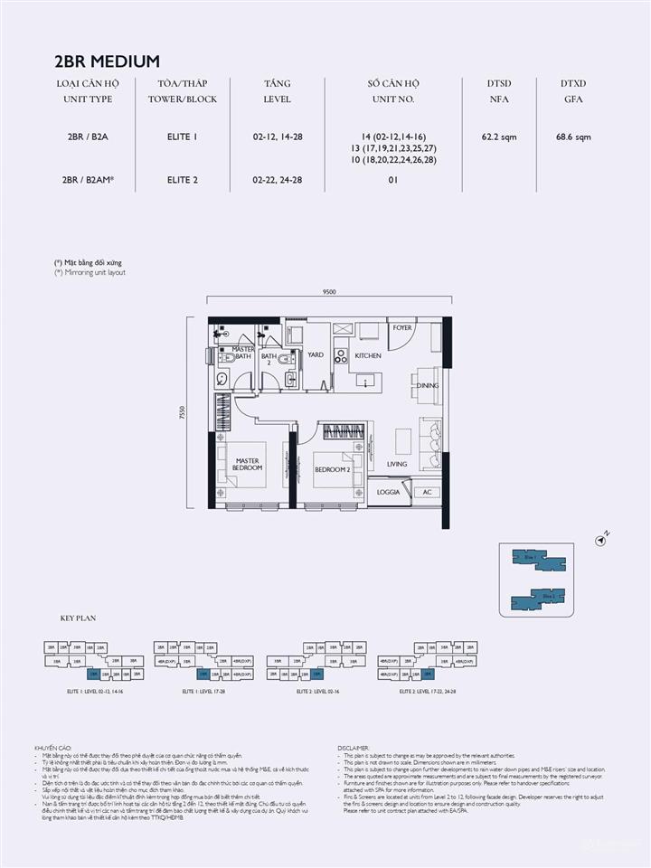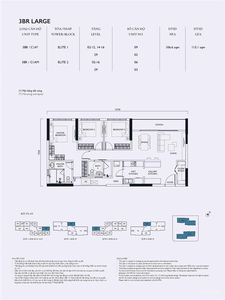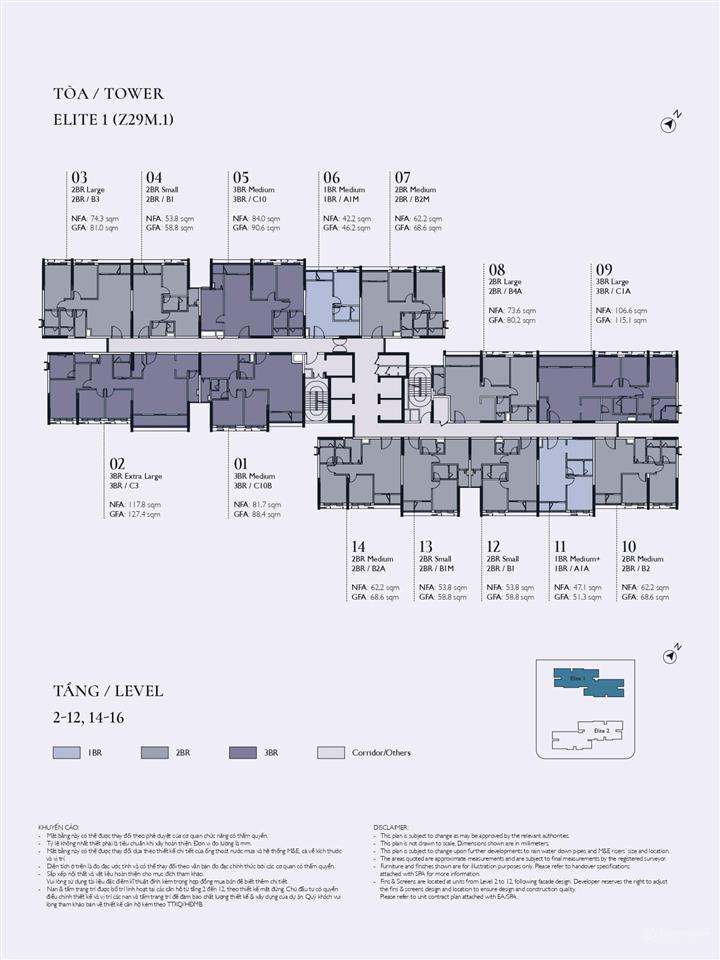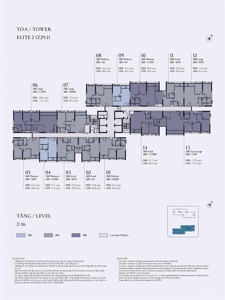 Tòa Elite 2: Mật độ 16 căn/sàn, hơn 100 căn hộ 4 phòng ngủ.