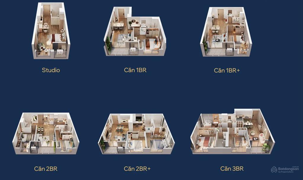 Loại hình sản phẩm: Căn hộ Studio, 1 phòng ngủ, 2 phòng ngủ, 3 phòng ngủ.