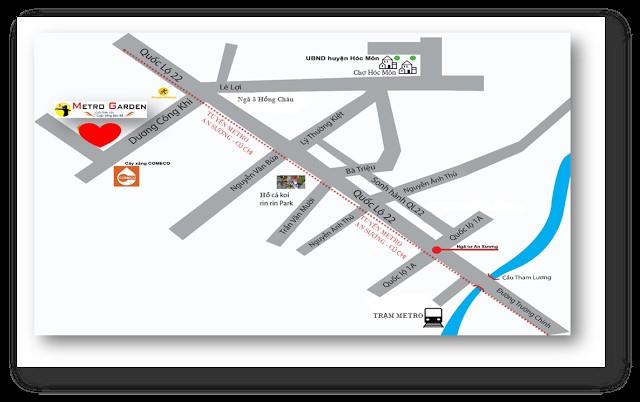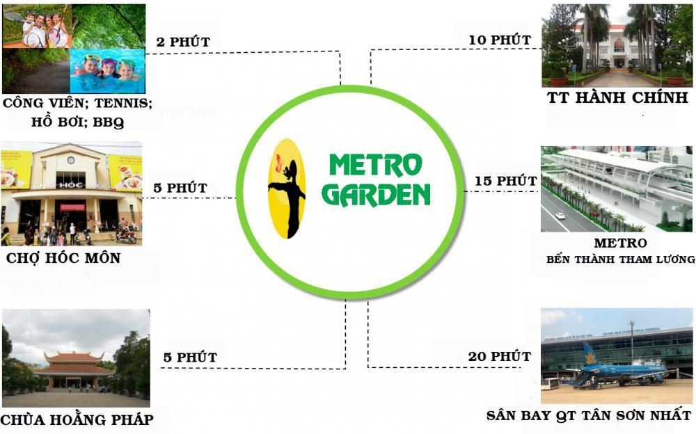 Thuộc khu quy hoạch đô thị Tây Bắc Tp.HCM, Metro Garden tọa lạc tại số 123 đường Dương Công Khi, xã Tân Thới Nhì, huyện Hóc Môn, Tp.HCM. Dự án sở hữu những điểm mạnh về vị trí địa lý như sau: