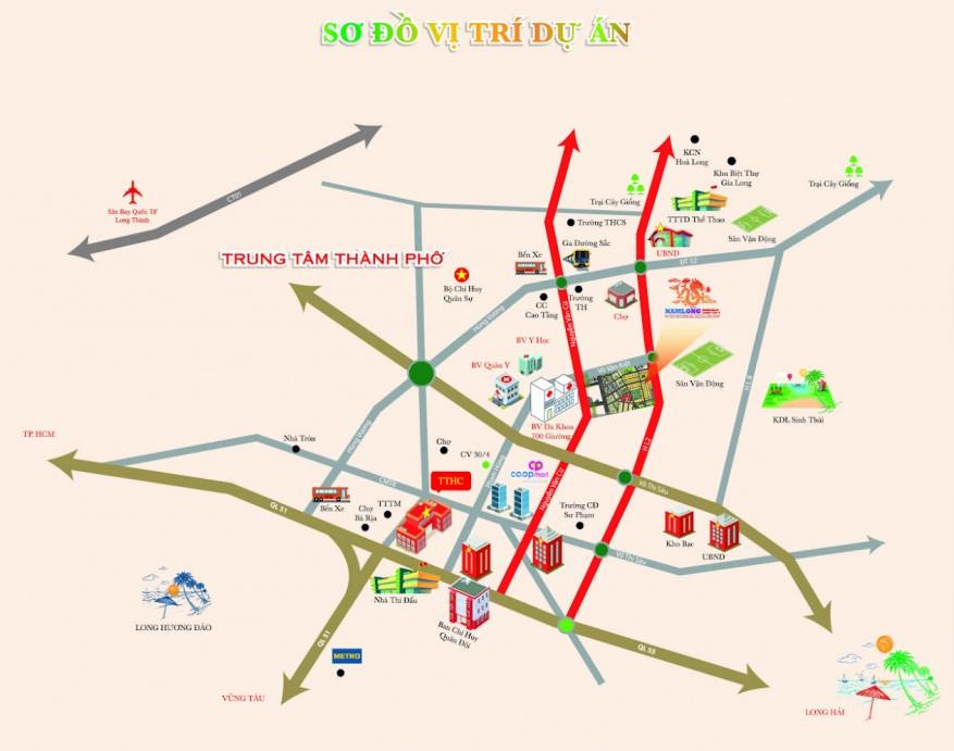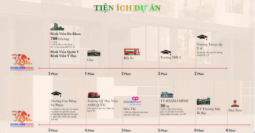 Bên cạnh đó, dự án còn được thừa hưởng những tiện ích xung quanh như gần chợ, siêu thị, trường học, bệnh viện... Từ dự án, cư dân có thể di chuyển dễ dàng, thuận lợi ra sân bay quốc tế Long Thành, Long Hải theo đường Võ Thị Sáu, Quốc lộ 55; tới Tp.HCM, biển Vũng Tàu theo Quốc lộ 51; tới Khu công nghiệp Hòa Long theo đường Nguyễn Văn Cừ.