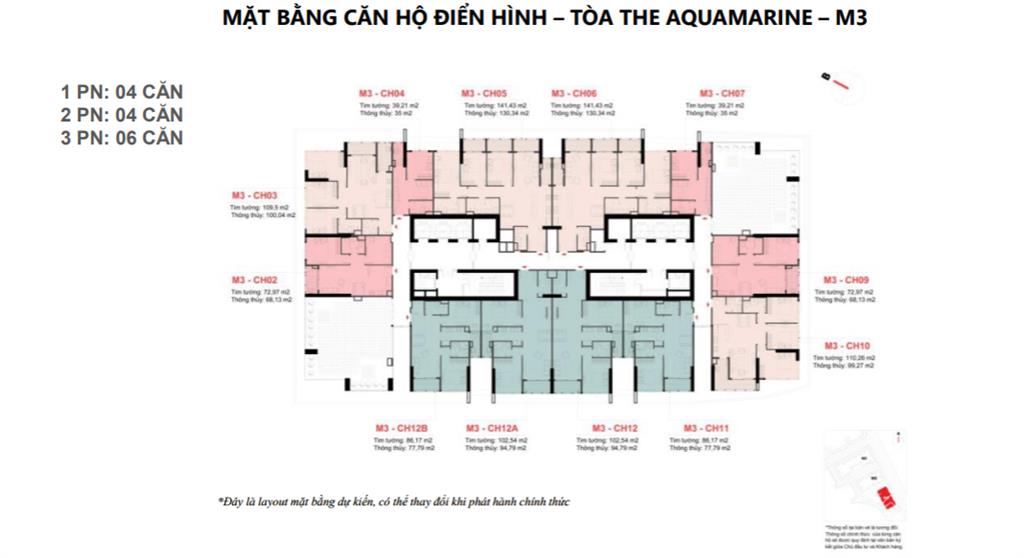 - Tòa M3 (The Aquamarine) có 394 căn hộ.