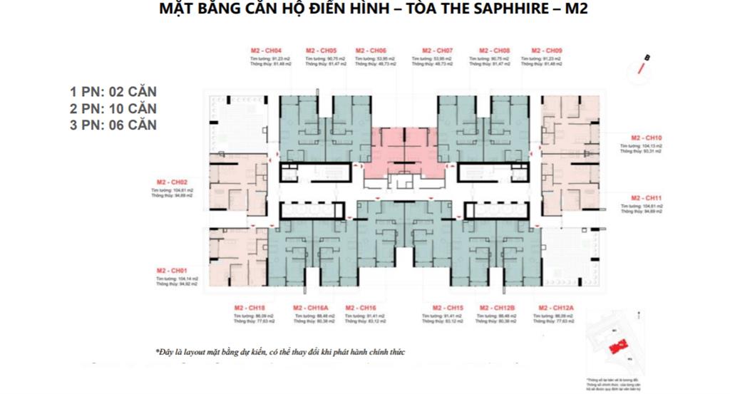 - Tòa M2 (The Sapphire) có 510 căn hộ