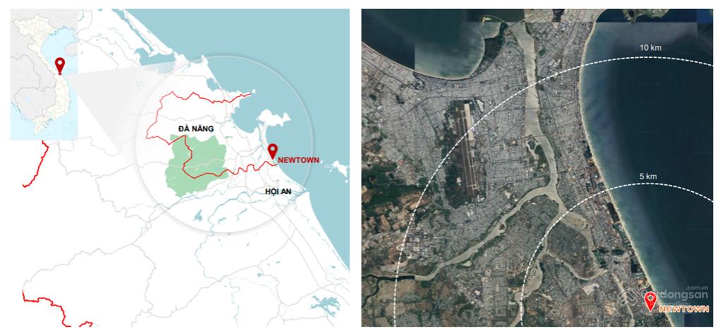 Dự án Newtown Diamond Đà Nẵng nằm ngay góc 2 mặt tiền đường biển Trường Sa (trục đường biển nối liền từ bán Đảo Sơn Trà đến Hội An kết nối đến sân bay Chu Lai) và đường Nam Kỳ Khởi Nghĩa (tuyến đường Vành đai phía Nam Đà Nẵng), gần hai điểm đến lịch sử – Di sản Thế giới được UNESCO công nhận là Hội An và Huế, bên cạnh đó từ dự án có tầm nhìn ra Ngũ Hành Sơn, Biển Đông và Cù Lao Chàm.
