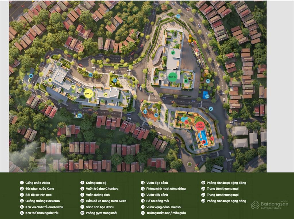 Quy mô: 25.900m2 gồm tòa G1, tòa G2 và tòa Misaki (tòa căn hộ thương mại), trong đó: