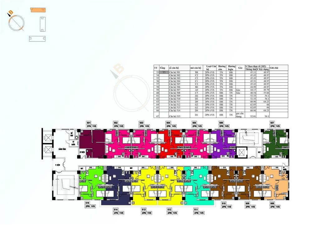 2 phòng ngủ và 3 phòng ngủ: Từ 38m2 đến 89m2.