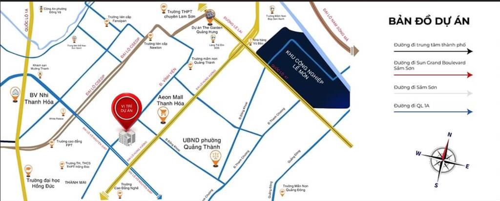 Ngoài ra, từ dự án Nhà ở xã hội Quảng Thành cư dân dễ dàng kết nối đến những tiện ích khu vực khác như: Aeon Mall, bệnh viện Tỉnh, trường học các cấp từ mầm non đến đại học, chợ, siêu thị….