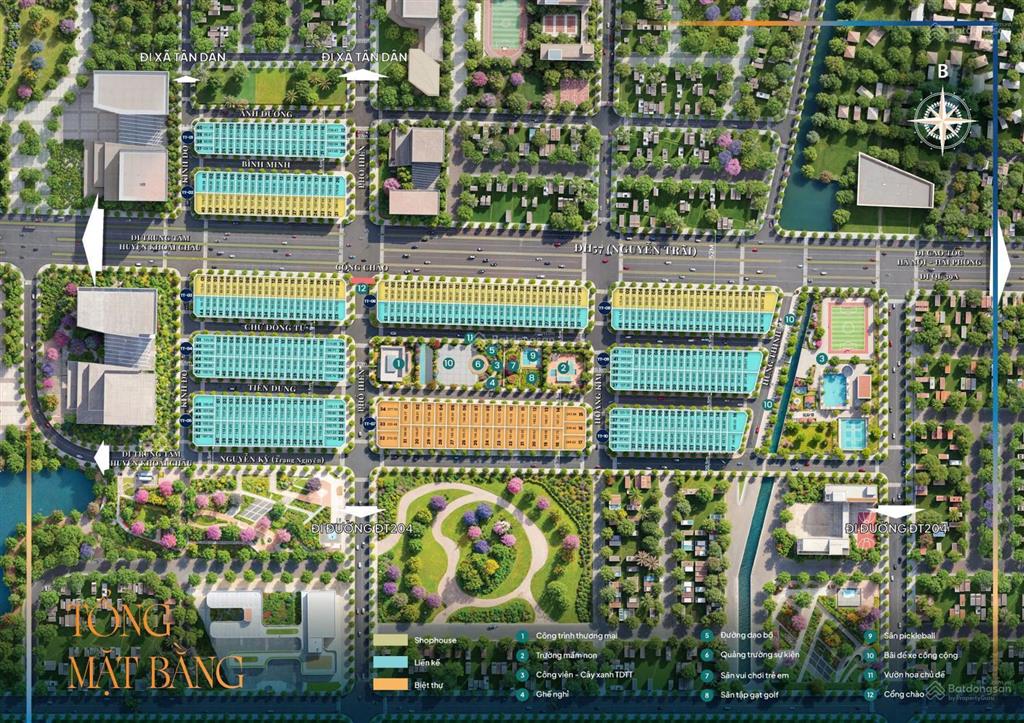Số lượng: 438 căn, trong đó: 96 căn Shophouse, 308 căn liền kề, 34 căn biệt thự