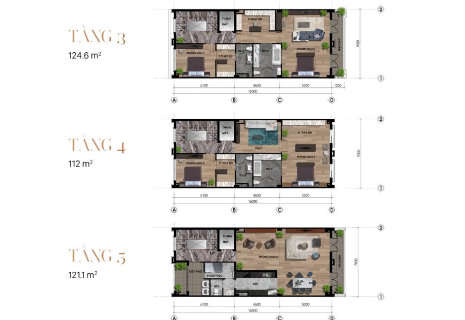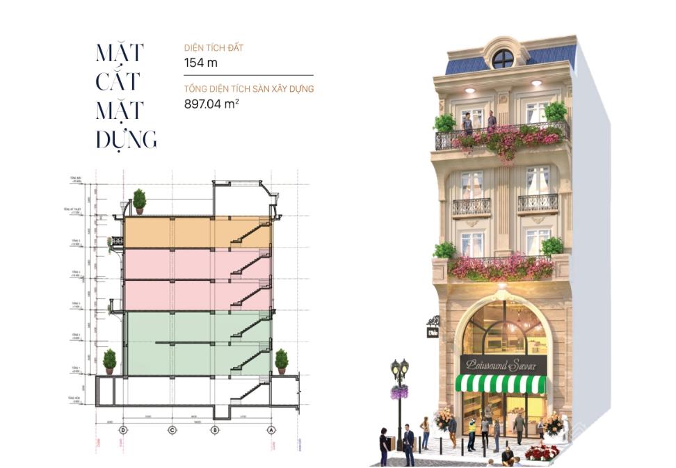 Kết cấu: 5 tầng, 1 hầm, 4 tầng, 1 áp mái (có thiết kế thang máy)