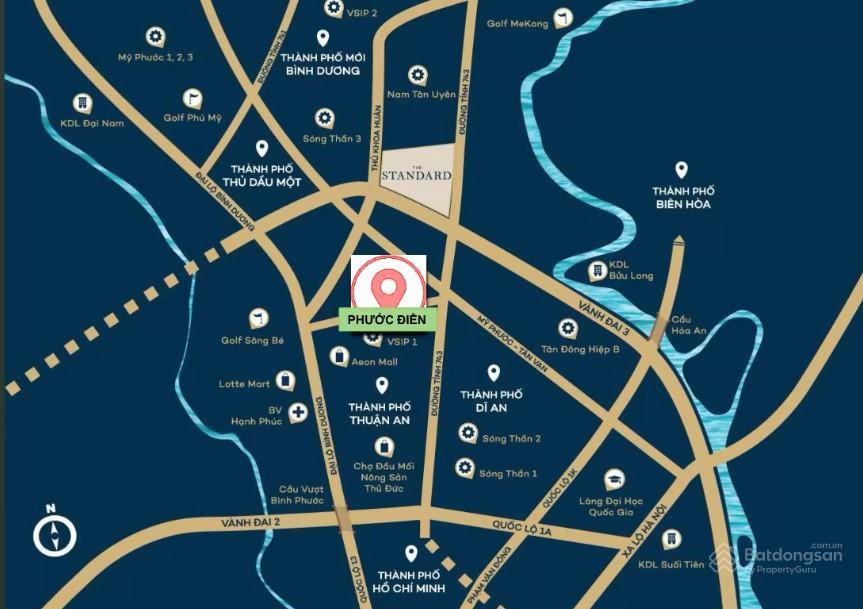 Dự án Phước Điền Midtown nằm đối diện chợ Phước Bình, trên đường Bình Chuẩn 34, phường Bình Chuẩn, TP. Thuận An, Bình Dương.