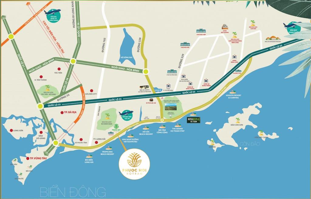 Dự án khu dân cư thương mại Phước Hội - Hồ Tràm toạ lạc trên mặt tiền đường Lộc An, ngay Ngã ba Mỏ cát, thuộc địa phận xã Phước Hội, huyện Đất Đỏ, Bà Rịa- Vũng Tàu. Dự án cách cung đường ven biển đắt giá, kết nối hàng loạt khu nghỉ dưỡng cao cấp gần Hồ Tràm chỉ khoảng 1km, đồng thời thuận tiện kết nối với các tuyến giao thông trọng điểm của khu vực như Quốc lộ 52, Quốc lộ 55, DDT44A, cao tốc Biên Hòa - Vũng Tàu.