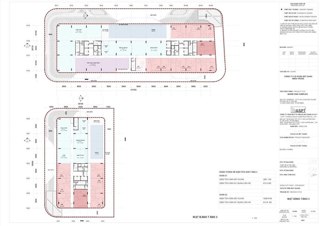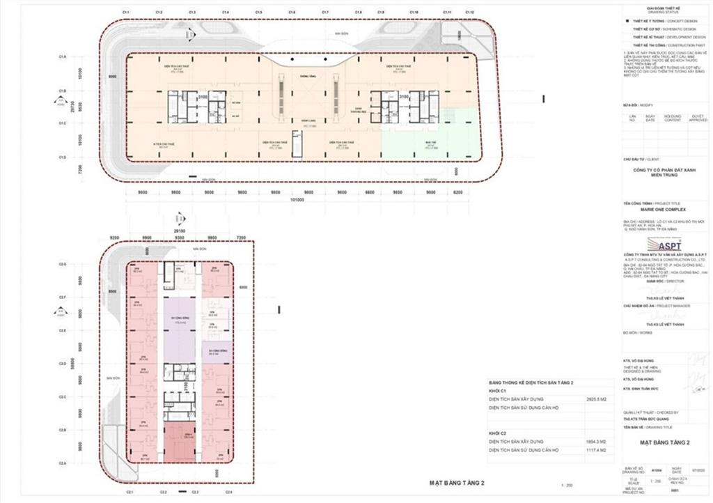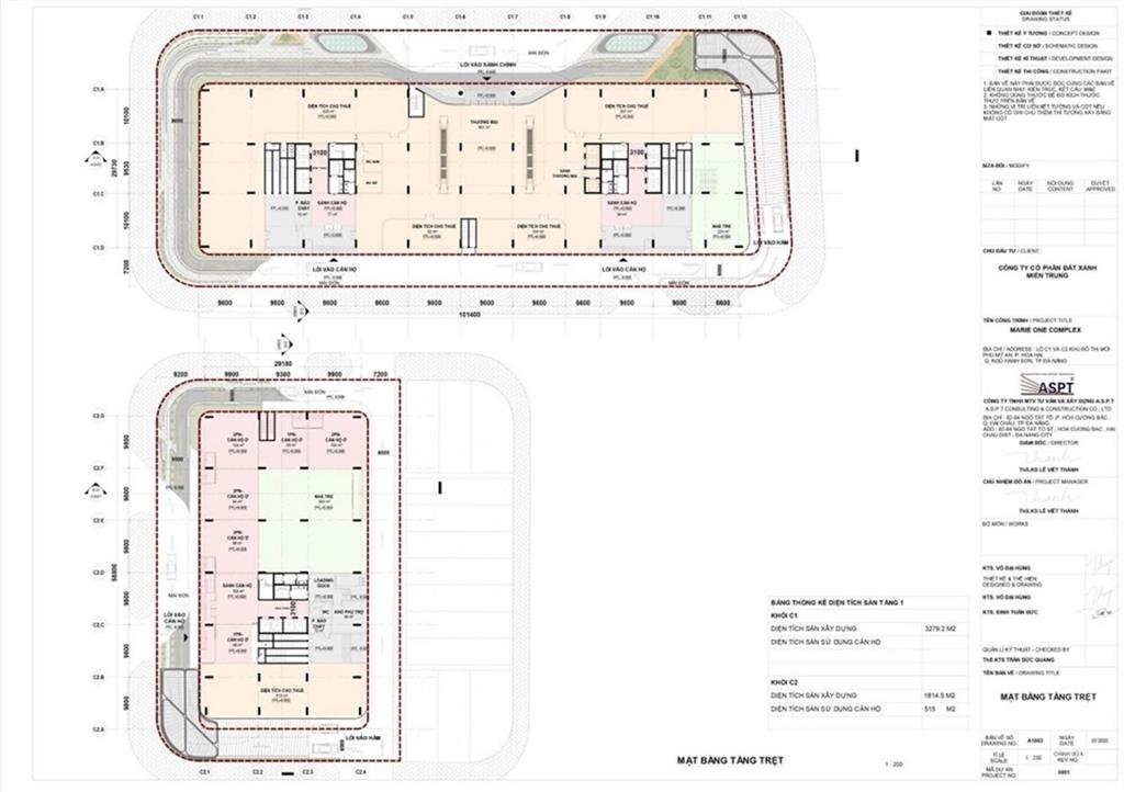 Diện tích xây dựng: 5.133m2 (Khối C1: 3.279m2, Khối C2: 1.854,3m2)