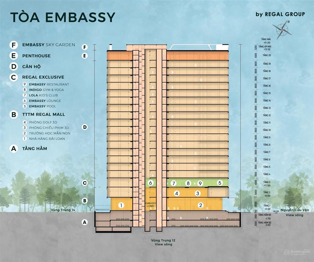 Tổng diện tích sàn (cả hầm): Khoảng 106.042,5m2