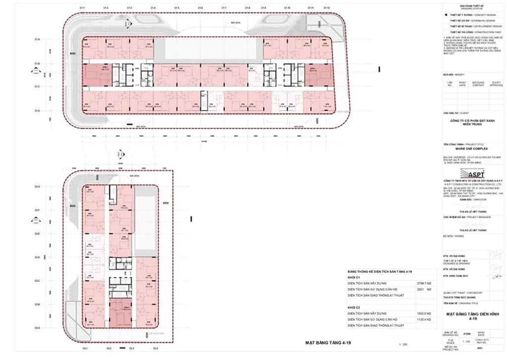 Gồm 2 khối chung cư C1, C2 - Xây 20 tầng nổi + 2 tầng hầm + 1 tum kỹ thuật