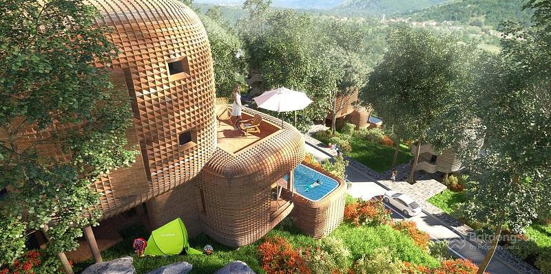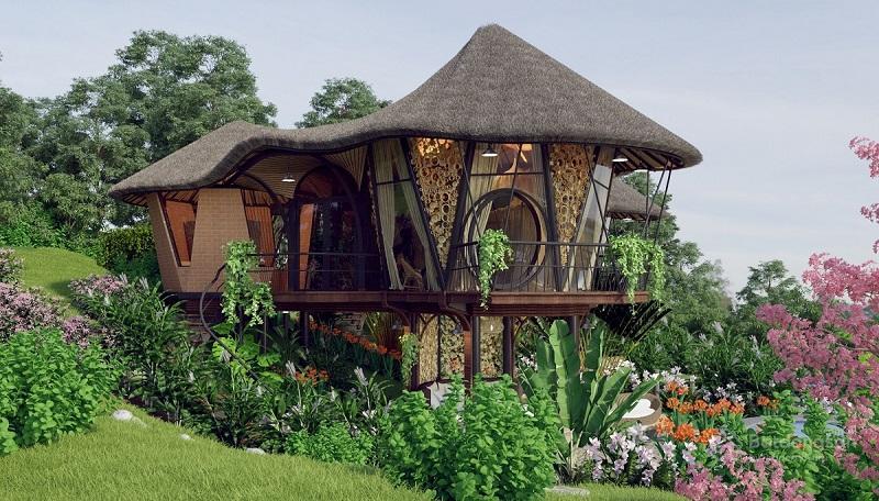 Các căn biệt thự đơn lập tại Sakana Resort Hòa Bình được lấy ý tưởng thiết kế từ hình ảnh chiếc nơm cá - mẫu thiết kế đầu tiên có mặt tại Việt Nam. Ngoài ra còn một số mẫu thiết kế độc đáo khác.