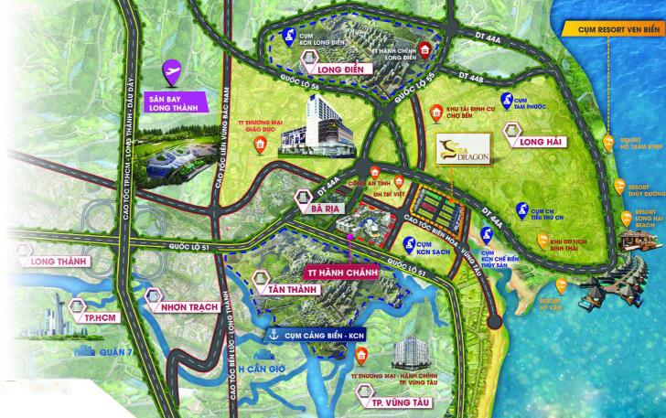Sea Dragon nằm ngay mặt tiền đường 44A – tuyến đường chiến lược kết nối Long Hải - TP. Bà Rịa - TP. Vũng Tàu. Dự án còn gần kề với nút giao ĐT 44A và cao tốc Biên Hòa – Vũng Tàu nên từ đây, bạn có thể dễ dàng di chuyển đến trung tâm TP. Bà Rịa, TP. Vũng Tàu, bãi biển cũng như khu Resort Long Hải hay Tp.HCM và các tỉnh thành lân cận.
