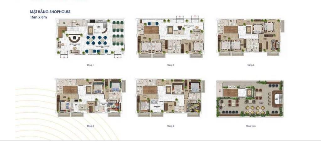 Mỗi căn shophouse có diện tích đa dạng từ 96-120m2, thiết kế linh hoạt để phù hợp với nhu cầu để ở cũng như kinh doanh của chủ sở hữu. Chủ đầu tư cũng đưa ra một số gợi ý thiết kế mặt bằng đối với các mẫu shophouse điển hình.
