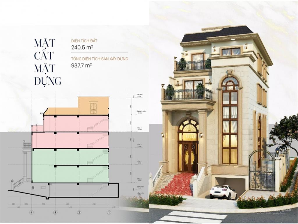 Dự án có diện tích đất từ 161 m2 – 240,5 m2 với kết cấu xây dựng 4 tầng nổi và 1 tầng hầm.