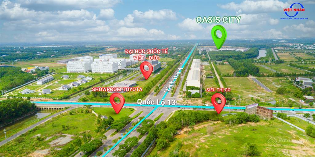 Dự án The Oasis Riverside là khu nhà ở dạng compound khép kín ở Bến Cát, Bình Dương, do Công ty Cổ phần Quốc tế Bắc Sài Gòn (SNI) đầu tư triển khai, phân phối độc quyền bởi Công ty TNHH Thiết kế Xây dựng Việt Nhân.