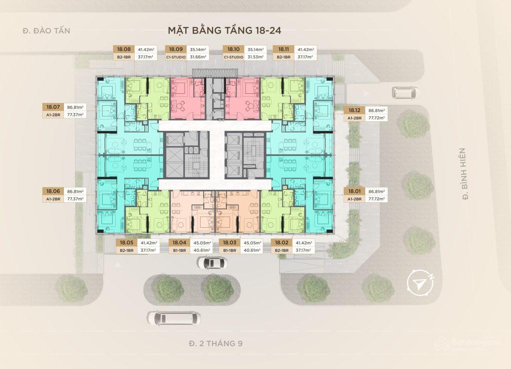 - Tầng 18 – 25: Căn hộ condotel, diện tích từ 35 - 86m2.