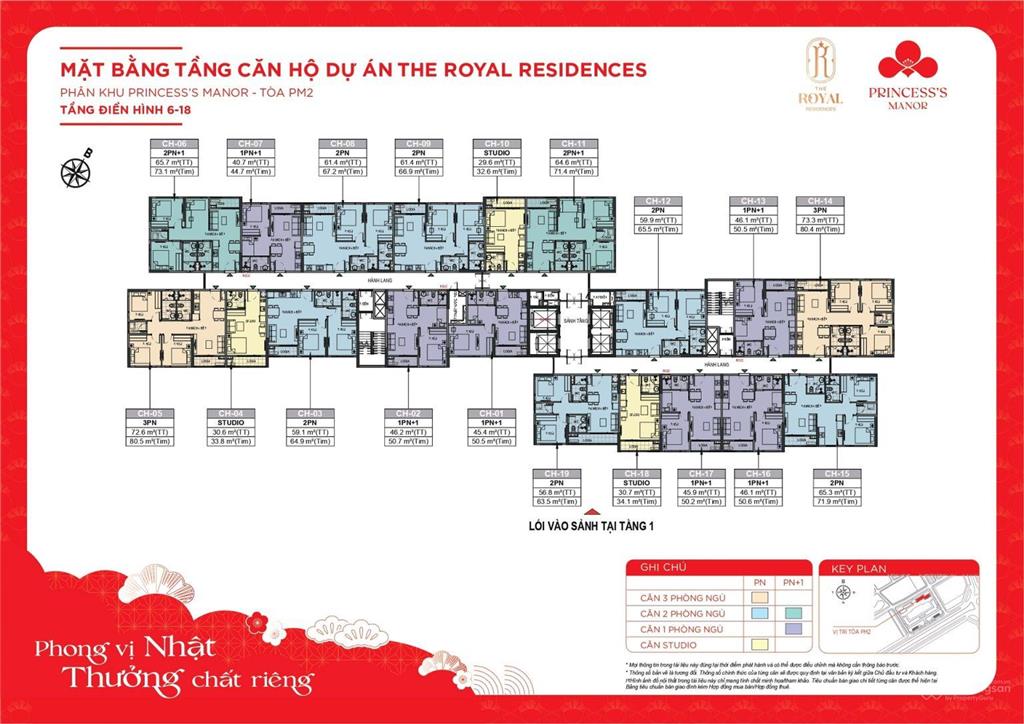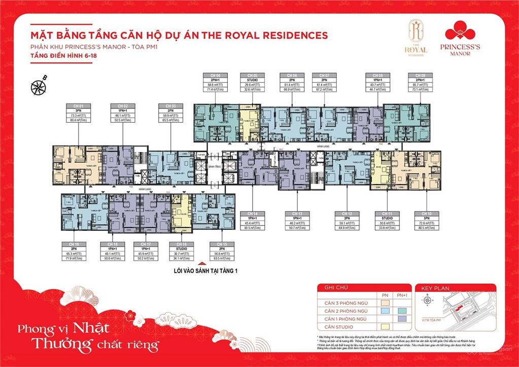 Các căn hộ tại dự án gồm các studio, 1-2-3 phòng ngủ.