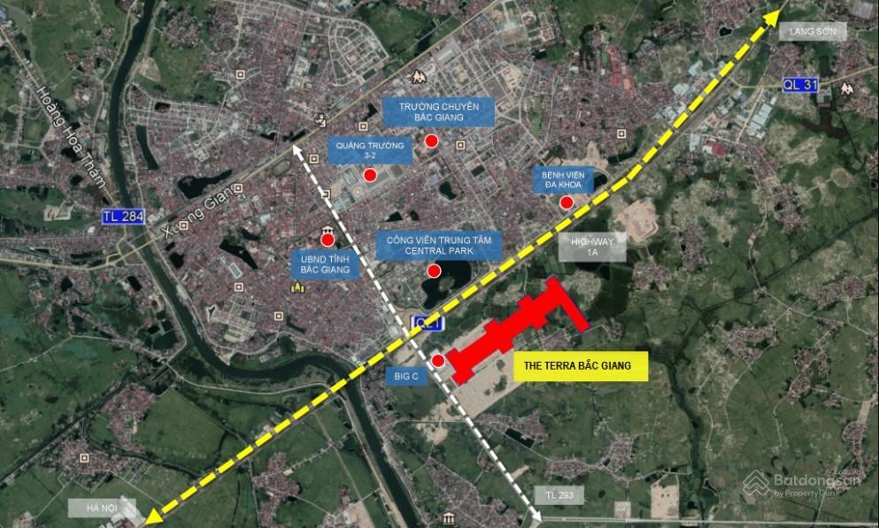 Khu phức hợp The Terra Bắc Giang toạ lạc tại trung tâm Khu đô thị Nam Bắc Giang, TP. Bắc Giang, thuộc khu hành chính mới của thành phố, gần các tiện ích nổi bật như phố đi bộ, quảng trường, siêu thị, bệnh viện, công viên, sân vận động,…
