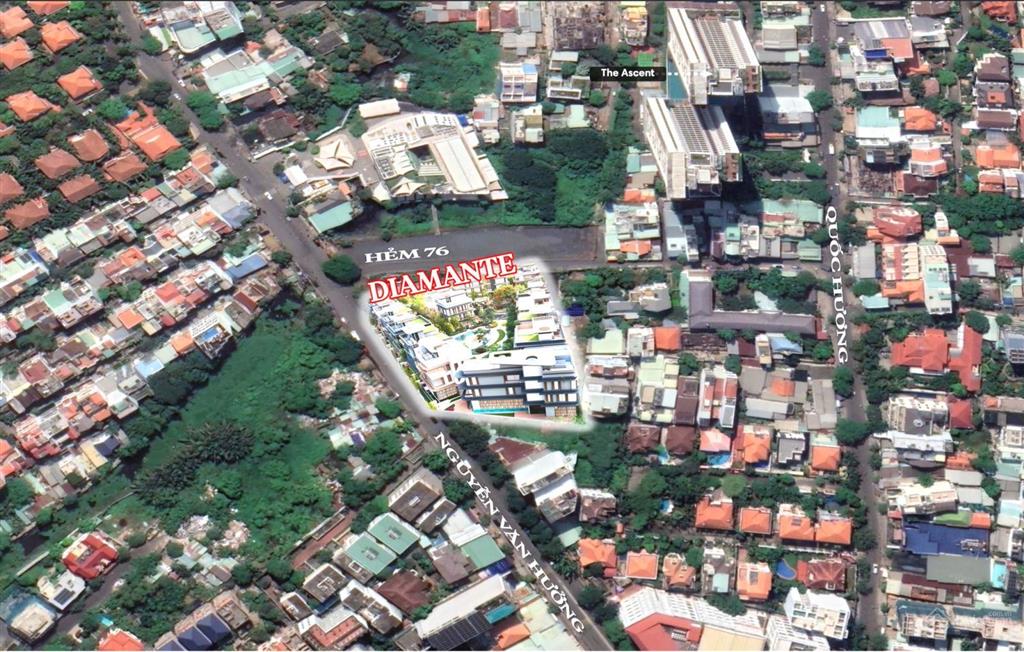 Vị trí dự án biệt thự Diamante nằm trên mặt tiền đường Nguyễn Văn Hưởng, ngay ngã 3 giao cắt với hẻm 76, thuộc phường Thảo Điền, Quận 2, TP.HCM. Đây chính là khu “phố nhà giàu” với hàng loạt các dự án nhà ở sang trọng được phát triển xung quanh.