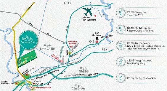 Dự án Western City nằm ngay mặt tiền Tỉnh lộ 830 (thuộc đường Vành Đai 4), huyện Bến Lức, tỉnh Long An. Vị trí này kết nối trực tiếp đến cao tốc Bến Lức – Long Thành và liền kề cao tốc Tp.HCM - Trung Lương nên việc kết nối đến các vùng lân cận sẽ vô cùng thuận lợi.