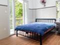 Nội thất đầy đủ với giường, tủ, bếp và máy lạnh.