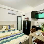 - Nội thất trang bị: Máy lạnh, giường, tủ quần áo, bàn làm việc, kệ bếp, tủ lạnh,...